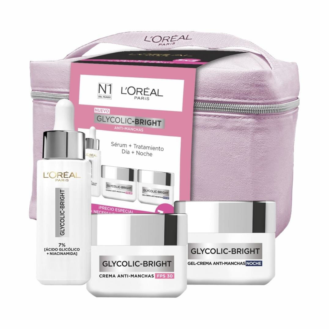LOREAL GLYCOLIC PACK SERUM + CREMA DIA + CREMA NOCHE + NECESER