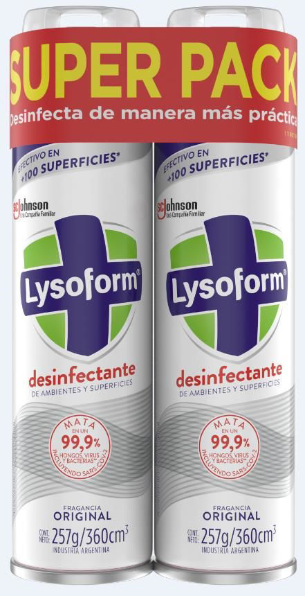LYSOFORM DESINFECTANTE AEROSOL ORIGINAL PACK X 2