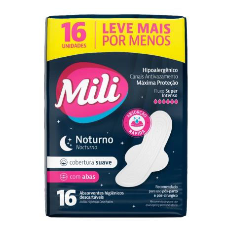 MILI TOALLA ABSORBENTE NOCTURNA SUAVE C/ALAS X 16