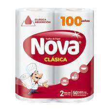 NOVA ROLLO DE COCINA 100 PAÑOS 50 PAÑOS X 2 ROLLOS